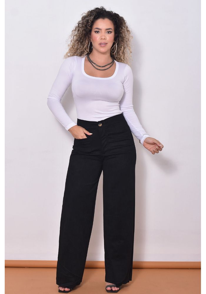 A calça flare suede bolsos é confeccionada em um tecido de toque macio e aveludado, oferecendo um caimento impecável. O design flare alonga a silhueta e adiciona um toque retrô com ares super modernos. Os bolsos trazem estrutura e praticidade ao seu dia a dia. A cor preta é clássica e extremamente versátil. Combine com blusas soltinhas, camisas ajustadas ou até mesmo com o nosso body manga longa branco para um visual elegante e confortável.