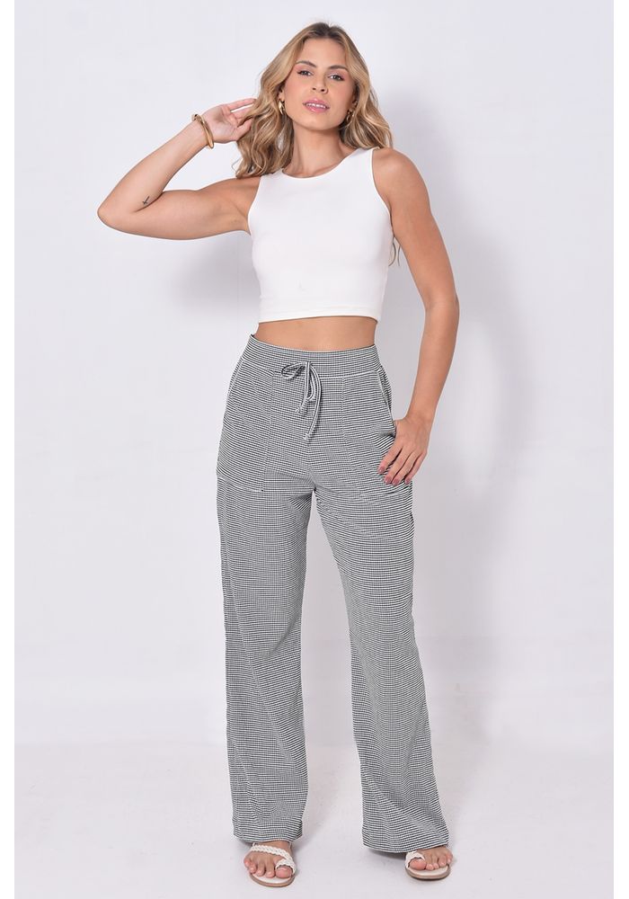 A calça feminina reta estampa vichy é a peça ideal para unir estilo e conforto no dia a dia. Confeccionada em tecido leve e com caimento solto, garante liberdade de movimentos e praticidade. O cós com elástico e amarração frontal proporciona ajuste perfeito ao corpo, enquanto a padronagem vichy, clássica e atemporal, traz um toque moderno às produções. Versátil, pode ser usada com blusas básicas ou camisas mais sofisticadas, compondo looks casuais e elegantes para diferentes ocasiões.