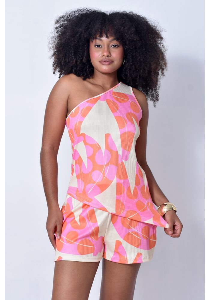 A blusa de um ombro só traz um visual moderno, enquanto o short tem cintura confortável e caimento soltinho. Confeccionado em ribana canelada, o tecido possui elasticidade e toque macio, garantindo conforto ao vestir. Uma opção prática e leve para composições frescas e descomplicadas.