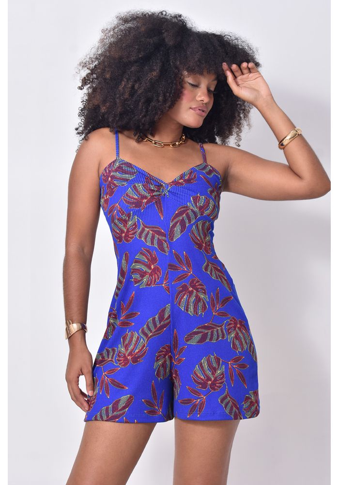 Esse macaquinho é daqueles que vestem fácil e valorizam o corpo. O tecido canelado com elastano se ajusta bem, garantindo liberdade de movimento e um caimento gostoso ao longo do dia. O detalhe de busto twist traz um toque delicado ao visual, enquanto a estampa deixa a peça mais marcante.